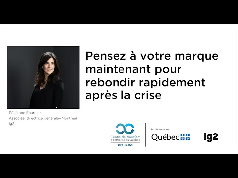 Aujourd’hui, le Centre de transfert d’entreprise du Québec (CTEQ) accueille Pénélope Fournier, repreneure de la firme de communications et marketing lg2. Elle vous présentera des actions concrètes à adopter dès maintenant en lien avec votre image de marque pour sortir le plus gagnant possible une fois la crise de la COVID-19 passée.