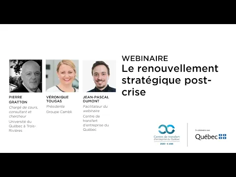 Ce webinaire se penchera d’abord de manière concise sur les trois temps du renouvellement stratégique. Ensuite, un témoignage d’une entrepreneure nous permettra d’obtenir des exemples concrets issus d’une crise antérieure et de celle de la COVID-19.