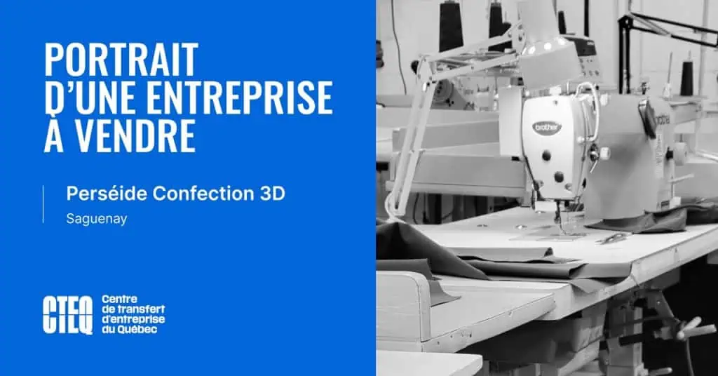 Perséide Confection 3D emploie 19 personnes, dont des travailleurs de production expérimentés, un mécanicien polyvalent, une personne dédiée à la coupe et une autre à l’inspection. 8 nouveaux employés se joindront à l’équipe très prochainement. C’est actuellement la propriétaire qui gère les relations clients, les achats, les fiches techniques et tout ce qui est relié à la mise en marche de la production. Cette équipe soudée, polyvalente et expérimentée sera un atout précieux pour le futur repreneur, facilitant ainsi la transition et la continuité des opérations.