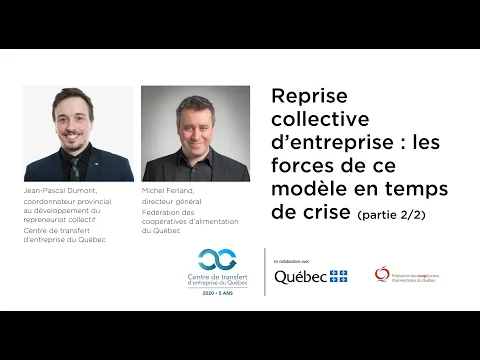 Dans cette capsule, Jean-Pascal Dumont, coordonnateur provincial au développement du repreneuriat collectif au Centre de transfert d’entreprise du Québec (CTEQ) reçoit Michel Ferland, directeur général de la Fédération des coopératives d’alimentation du Québec pour discuter des forces du modèle coopératif en temps de crise.